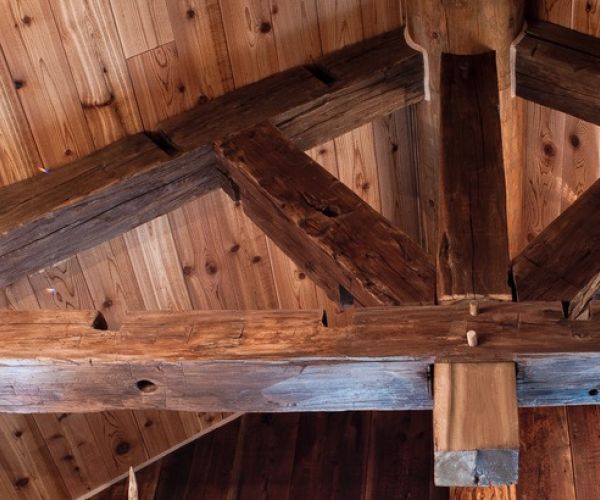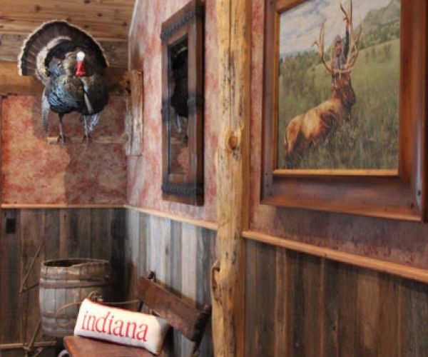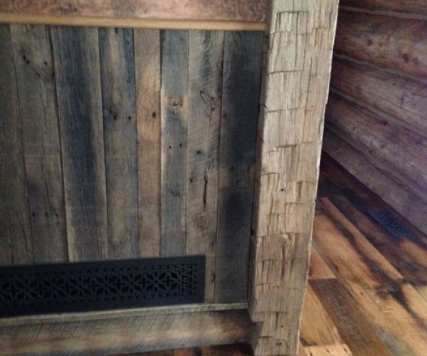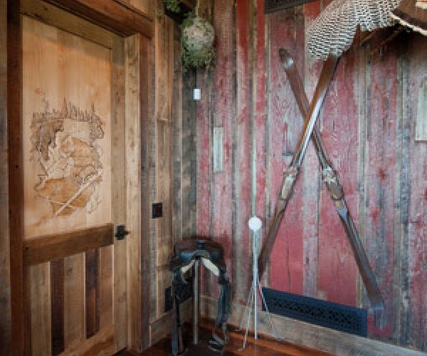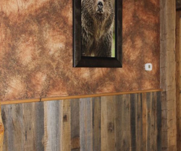 Nested up close to the north rim of Gore Canyon on the Colorado river this hunting lodge is a retreat for its owners to be a part of Colorado mountain life and spend time outdoors exploring and hunting. This project was a collaboration between Crosscut Reclaimed and Joe Harthun at Way West architecture. Joe approached us about this project knowing that we had the knowledge, experience and tools to take raw materials from the owners family farm plus some that we sourced and mill, build and install all the wall treatments, wainscot, trims, cabinetry and decorative trusses.